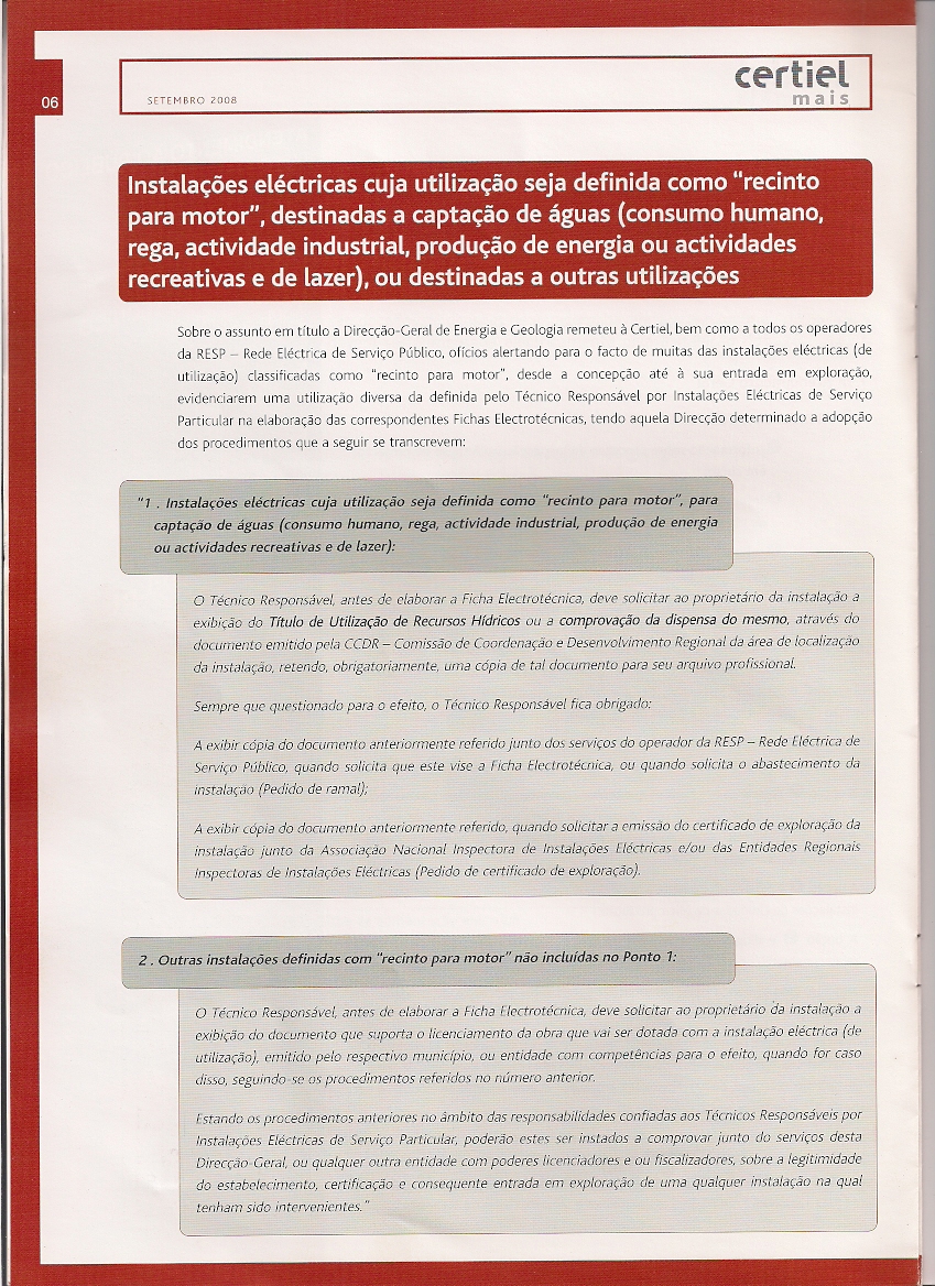 afinal é preciso ou não certificação da certiel? segundo o colega pedro_mendes ele diz que não mas segundo o documento que ele apresenta em anexo parece me a mim que é necessário certificação e aquando dessa certificação é necessário apresentar "titulo de utilização de recursos hidricos ou a comprovação do mesmo".