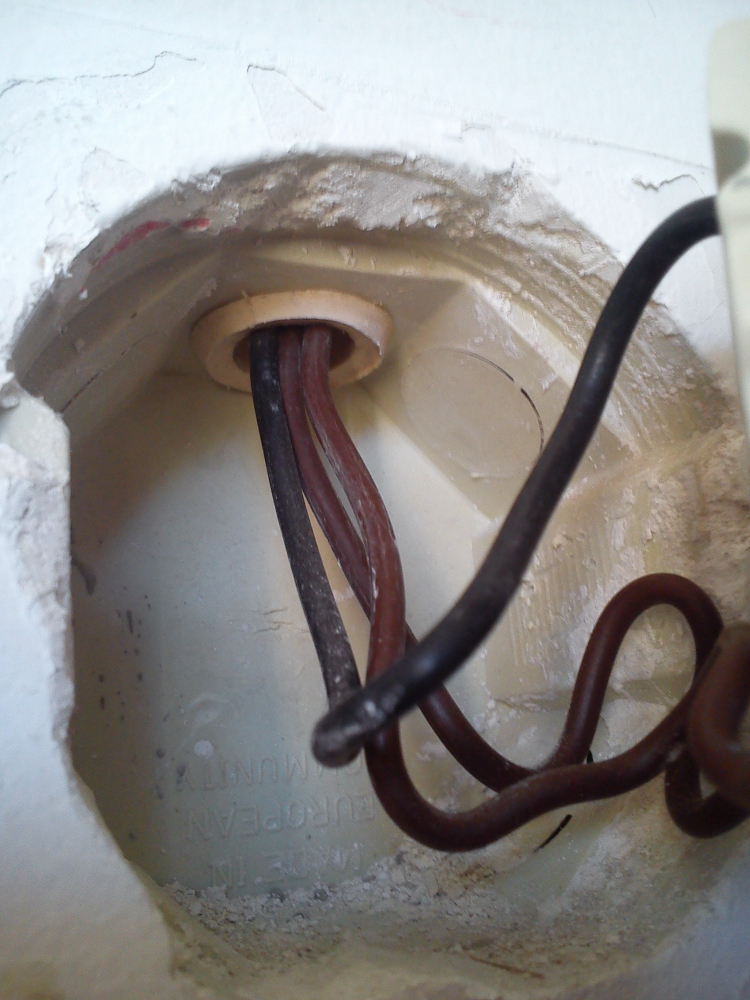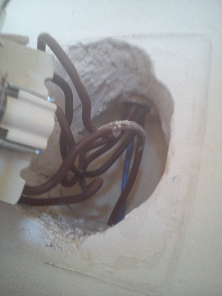 - 1 cabo azul que vai de cima a baixo pela parede;
