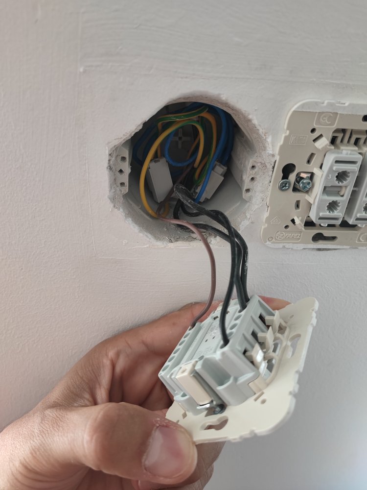 Estou a tentar instalar um "Sonoff Mini" dentro de cada caixa de interruptor das minhas persianas elétricas. Para quem não sabe é um aparelho que permite controlar dispositivos elétricos através da internet (com o Assistente Google ou Alexa, por exemplo). Como podem ver, mas imagens está bem explícito quais fios vão para quais buracos mas o problema é que eu não sei identificar os fios... Até porque as cores dos fios que vejo na minha parede são diferentes das que estão na imagem!