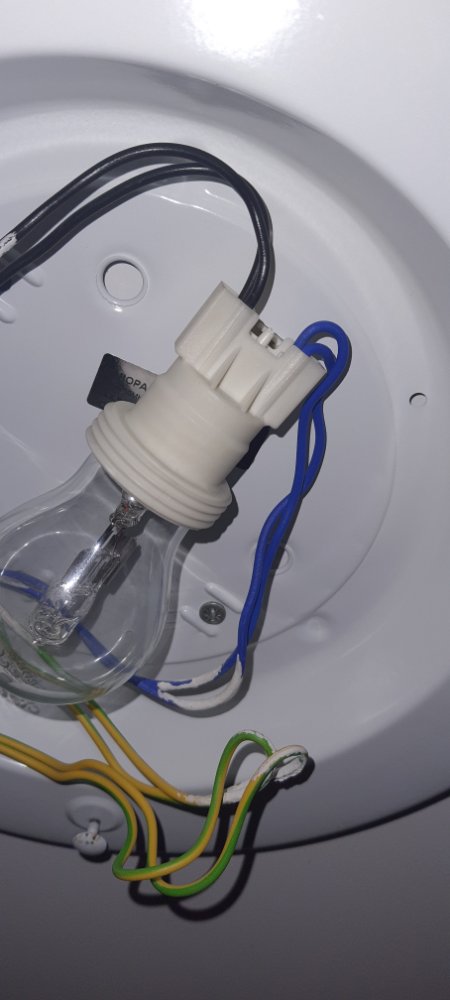 Assim é como se encontra o candeeiro atual, mas o casquinho que o candeeiro atual tem permite ligar dois fios de cada ao casquilho (tem quatro entradas). Os fios de terra não estão ligados. Agora o candeeiro novo não tem essa divisão. Tem 3 ligadores (fase, neutro e terra). A minha questão é se posso ligar os cabos todos juntos, respeitando as cores ou tenho que comprar algum tipo de adaptor para fazer o efeito do casquilho?