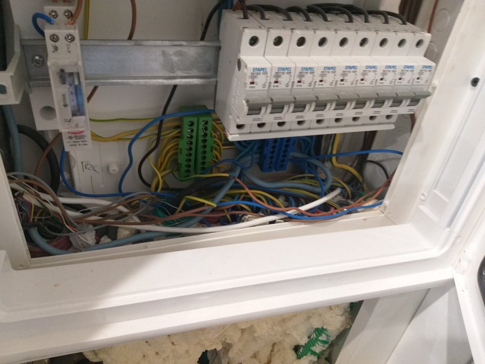 Concordo quando fala em trolha, realmente parece que foi alguém de uma especialidade completamente distinta da elétrica a fazer esta "merda de trabalho".