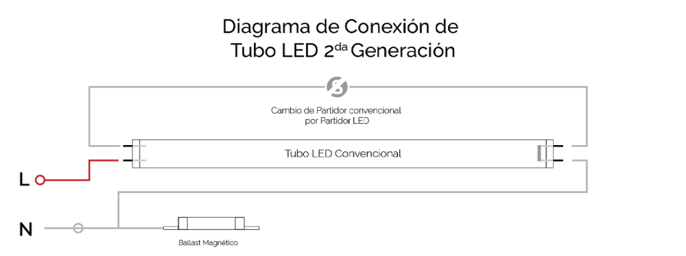 A forma de termos as ligações na armação compatíveis com estes 2 tipos de lâmpadas, é a ligação igual à que se fazia com as florescentes com balastro magnético, mas retirando o balastro, e para as lâmpadas de 1ª geração, não colocar o arrancador, e para as de 2ª geração, colocar o shunt que vem com a lâmpada no lugar do arrancador (ou seja, o diagrama que está para a 2ª geração, sendo a única diferença colocar ou não o shunt na posição do arrancador).