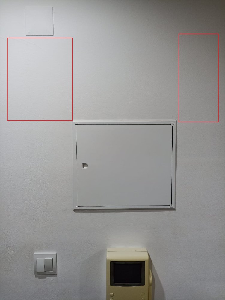 Tenho receio de possíveis cabos elétricos a passar na parede onde queria fazer 2 a 4 furos, na zona delineada da imagem.
