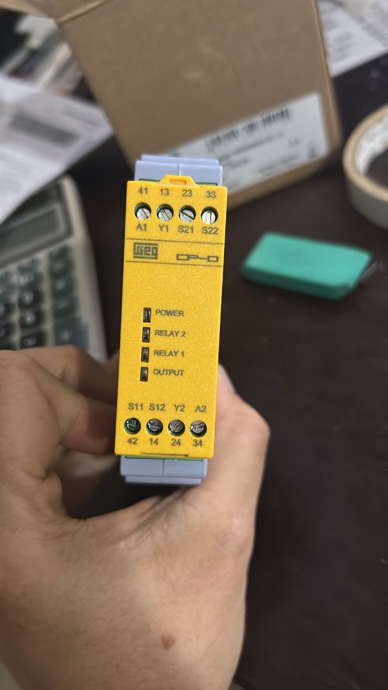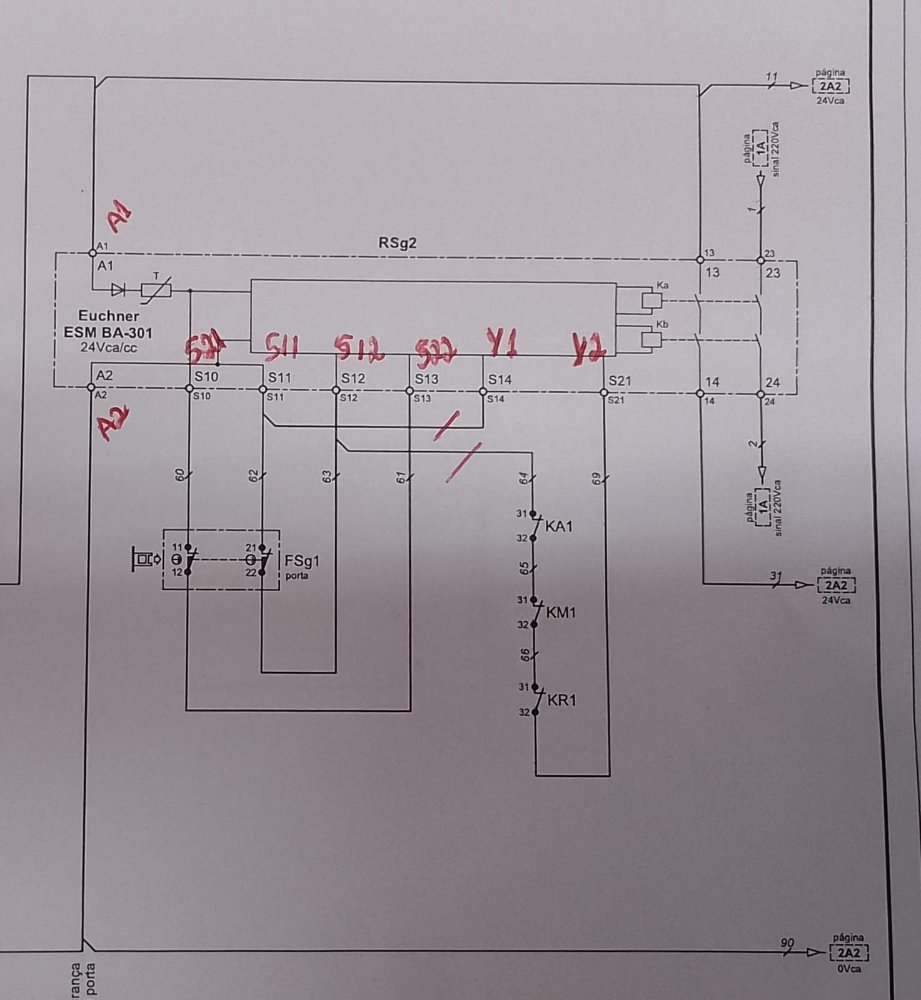 Estou com esse relé Euchner esm-ba3 instalado na maquina, o mesmo apresentou defeito e ao substituir por um weg cp-d não consigo fazer o esquema dele, algum detalhe esta me faltando para conseguir interpretar o esquema elétrico e fazer funcionar o bichinho.