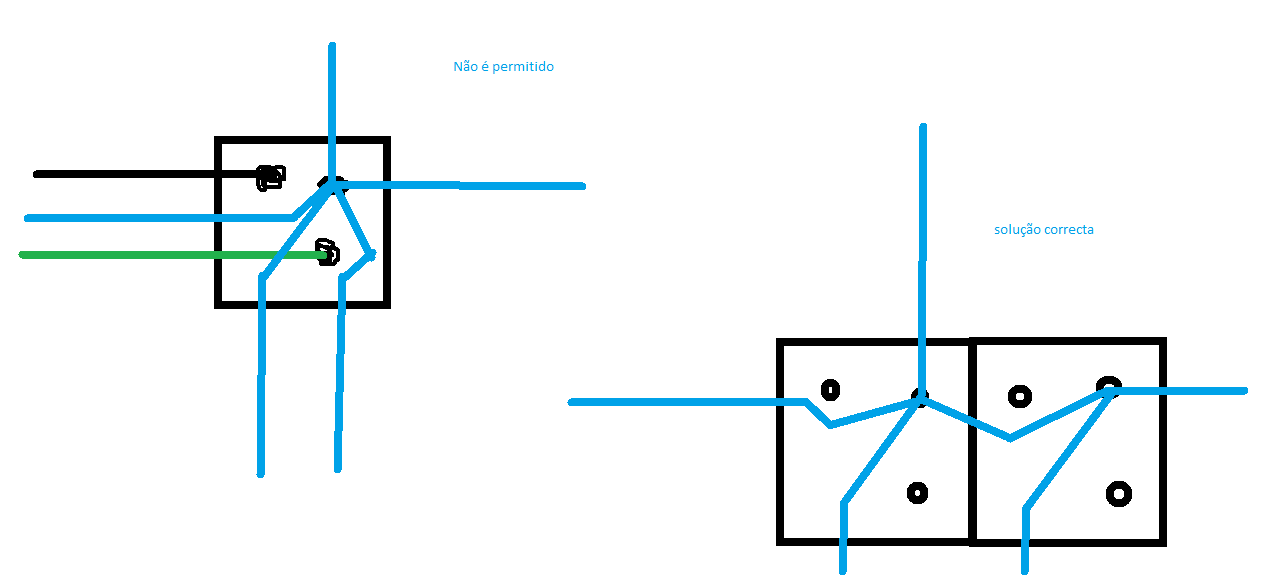 Assim fica melhor e só gasta uma caixa, mas pode usar-se ligadores Wago