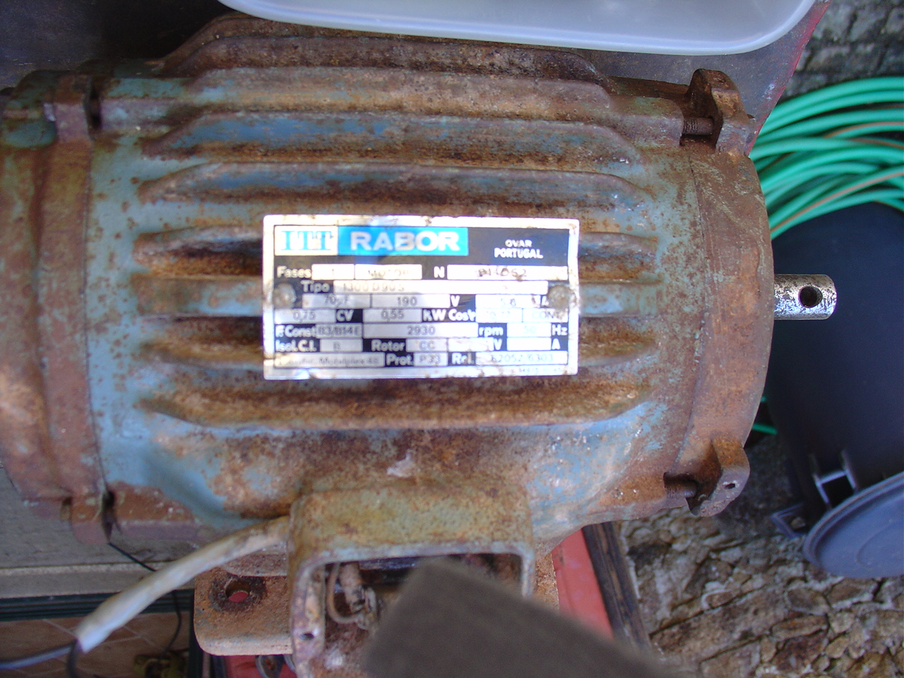 O motor é um RABOR ITT com 2900 rpm e 0,75 cv