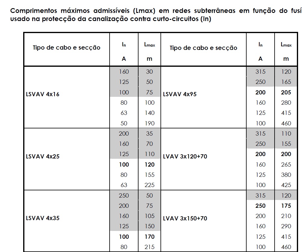 Tendo em atenção o valor do Icc pela fórmula calcula-se o Lmáximo. A DMA da EDP faz os cálculos assim.
