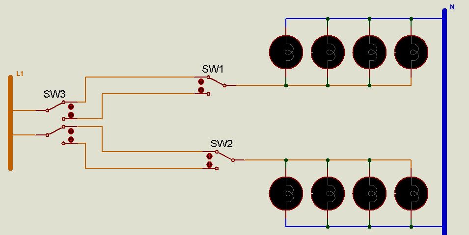 O comutador duplo acende metade do tecto num botao, e outra metade no outro