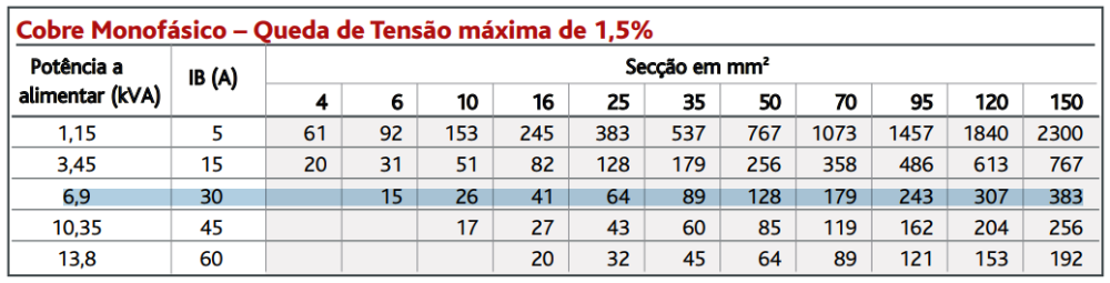 Certificado para trifásico 20.7KVa mas está a monofásico 6.9KVa, passa de 10mm para 6mm e faz 80 metros até ao dcp.