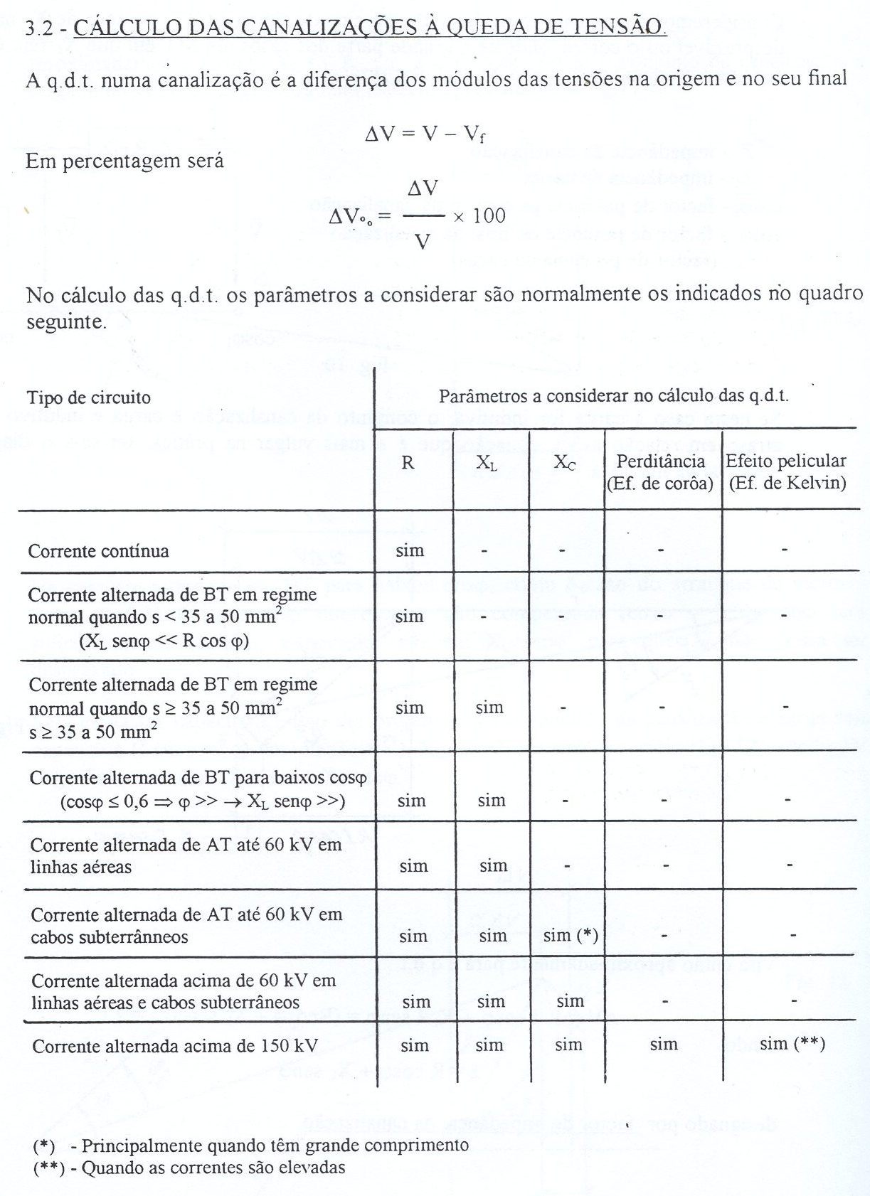 As expressões indicadas nos post's anteriores para cálculo da q.d.t. são válidas para secções das fases e neutro iguais. Daí eu perguntar se forem diferentes com a secção do neutro reduzida como calculam a q.d.t.??gilpedroso Escreveu:????joaoosvaldo Escreveu:Ok. Quanto a mim estou esclarecido em relação a esta questão. Mas queria ainda que me dissesem no caso da secção do neutro ser reduzida como calculam a queda de tensão???