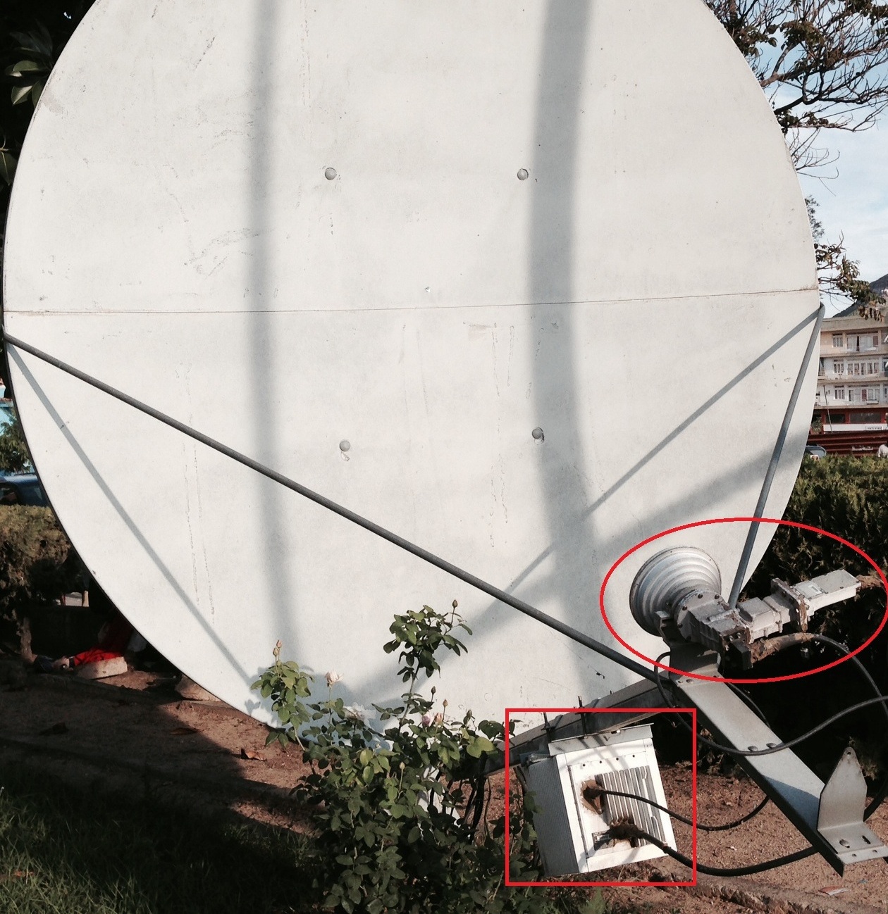 O elemento assinalado pela elipse é o LNB. O elemento identificado com um quadrado para que serve?