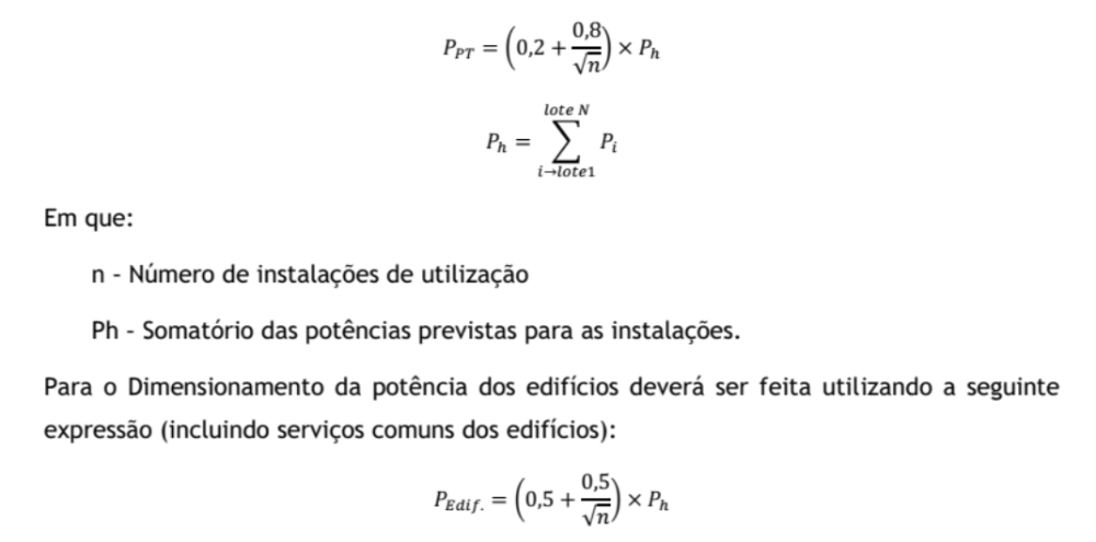 Recebi uma Memória Descritiva de Instalações Eléctrica, que utiliza para o dimensionamento das potências dos edificios e do posto de transformção as formulas em anexo.