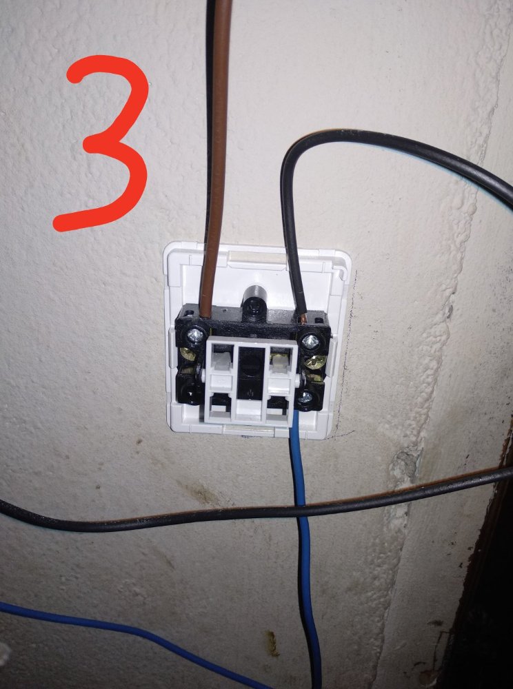 No 1 troca a posição do castanho com o preto. No 3 troca a posição do castanho com o azul. Depois de teres isso a funcionar, troca os condutores azuis por condutores de cor preta ou castanha ou cinzenta.