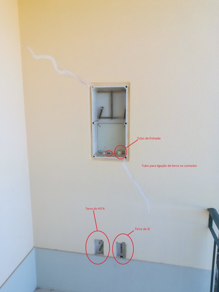 Só que a caixa do contador foi instalada junto da Porta, na parede da entrada no exterior. E não tem caixa dos fusíveis/portinhola/P100.