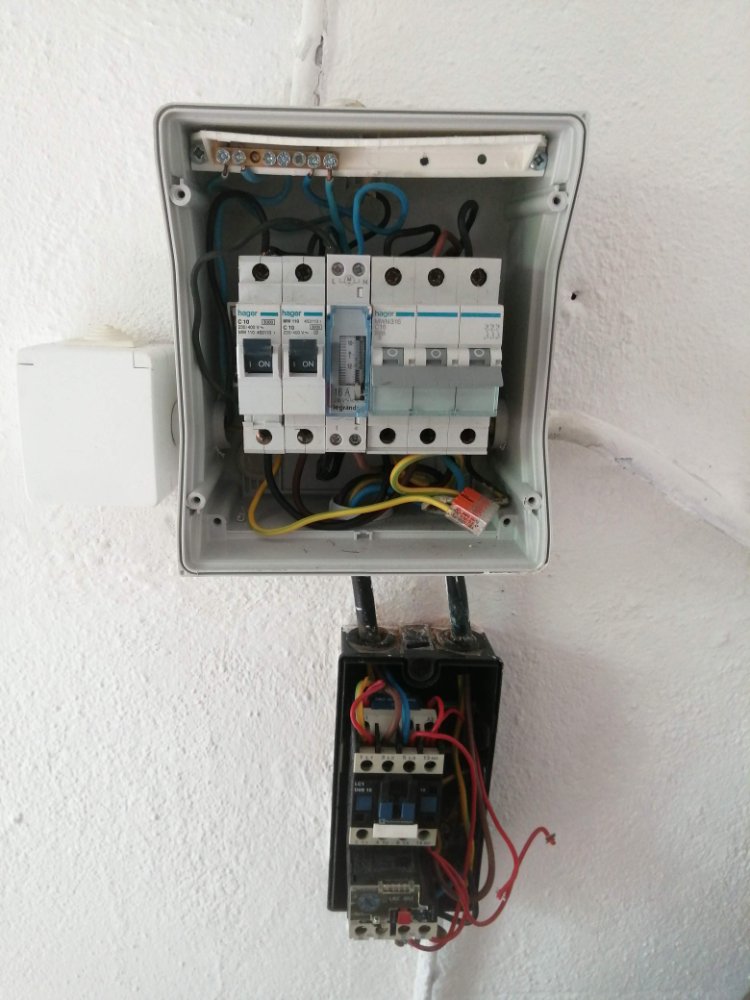 Quanto a distância do relógio ao contator são cerca de 30 a 40 cm mais metro e pouco até ao motor da.bomba.