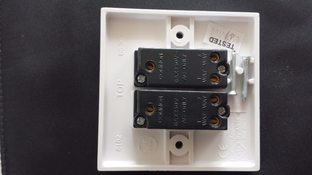 Parece haver um problema ! pois salvo erro ai em Inglaterra, existe frequentemente, um tipo de interruptores que consoante as vezes que carregamos na tecla, a intensidade da luz é diferente, ou seja os interruptores são " electrónicos ", têm mais funções que simplesmente ligar e desligar, dai ter mais fios ...