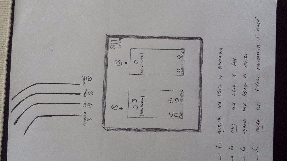 O problema é que não consigo passar a corrente de um para o outro pois existem quatro fios (terra+ fase+ neutro+ comutador) .