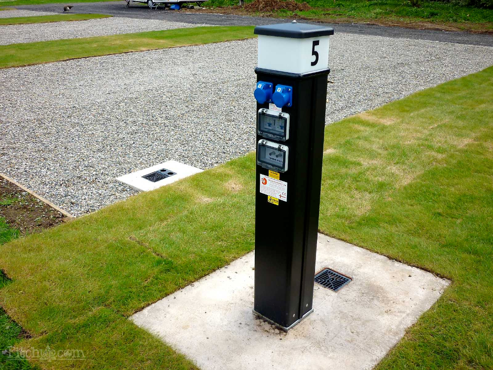 “… a entrada (ligação)á caravana é um cabo que tráz corrente de 220V mas está limitado a 8 ou 10 AmP, que vem do quadro do parque, …”