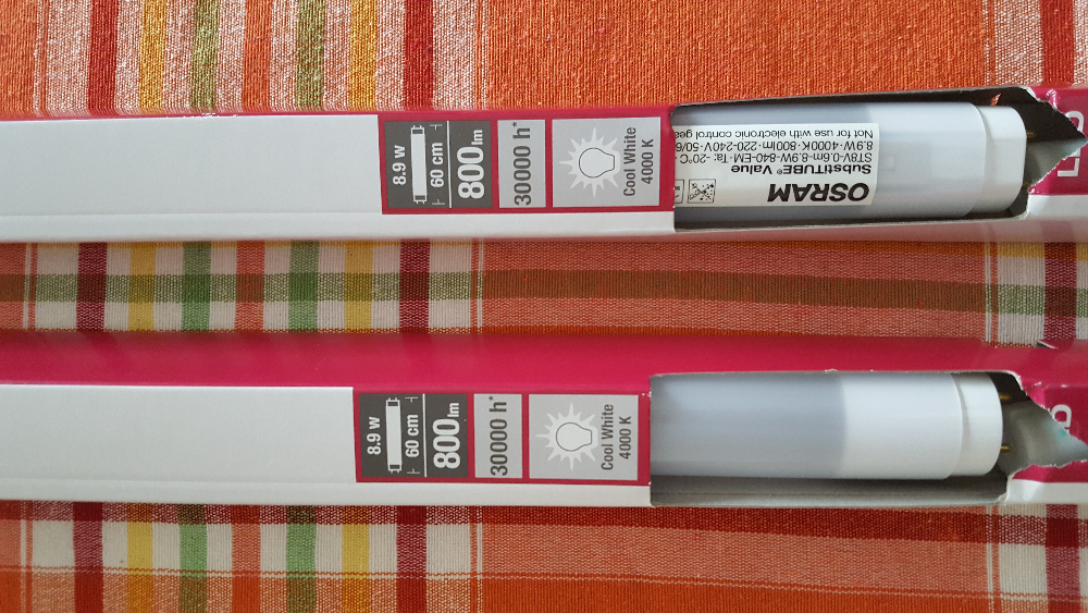 A troca das fluorescentes para leds tem de ser efetuar uma operação simples. Por norma geral, shuntas os dois condutores do balastro e trocas o arrancador pelo que vem junto da led.