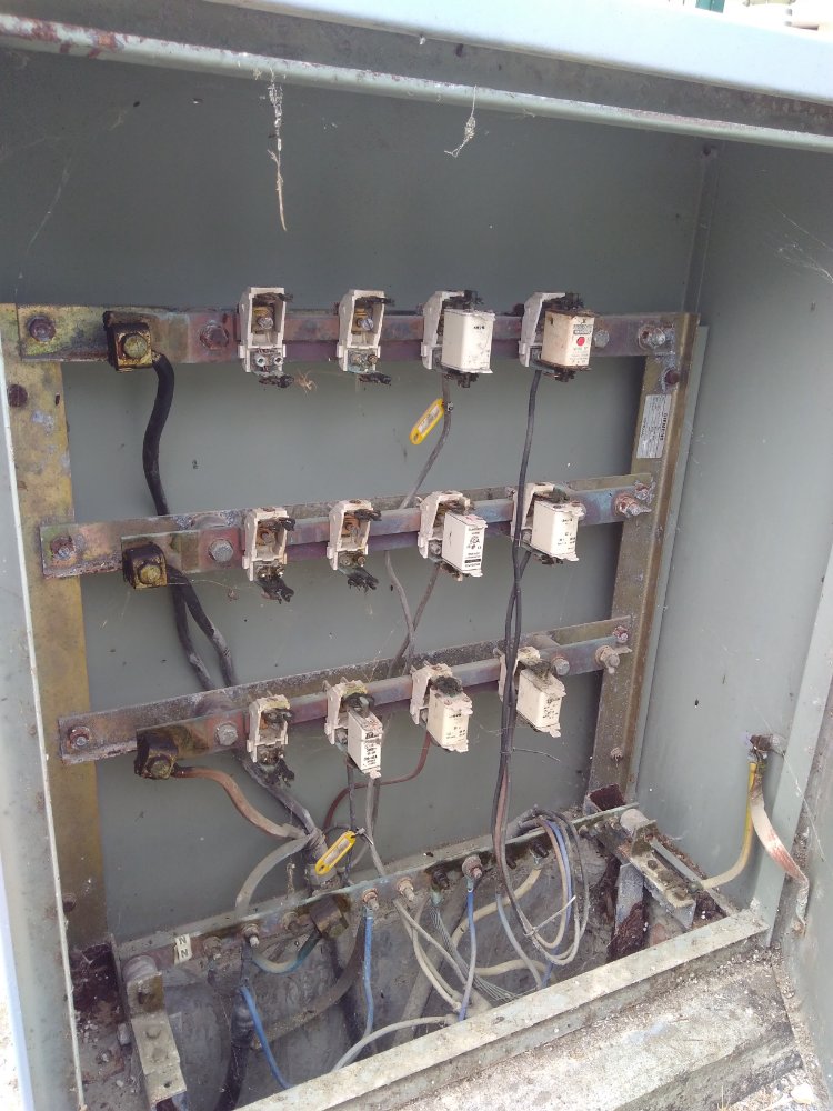Pronto agora foi.... As 2 imagens iguais e antes de de chegar na casa... E a outra foto dos fusíveis onde o terra está cortado. Sem estar ligado em nada.ja é quase no relógio da EDP. Eu acho que está desligado pq os cabos são de 10 mm é só o terra é 6 mm o que acham... Faço um aterramento com astes tbm? Ou só passo um cabo 10 mm do terra e peço pra ligar?