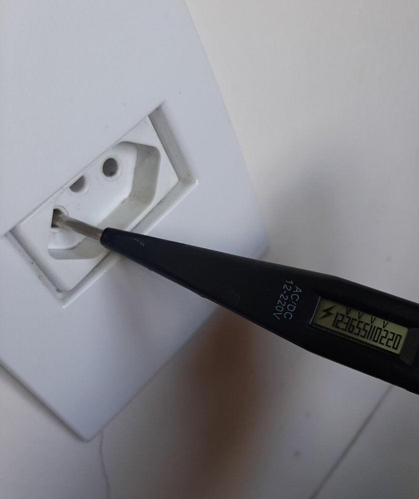 Nota: todas as outras tomadas da casa testam 123v e um fio neutro.