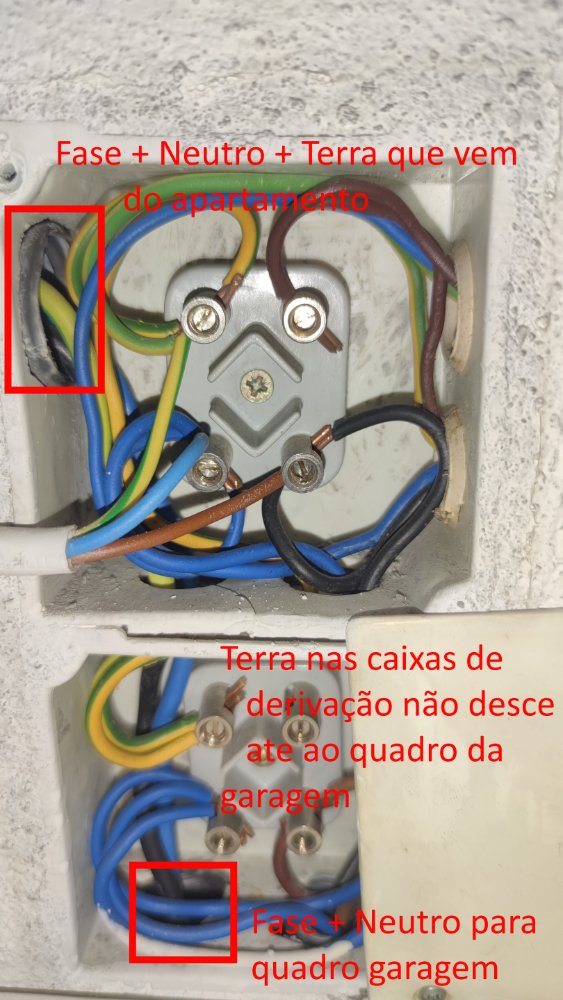 Afinal tenho fio Terra na garagem. Ficou numas caixas de derivação e não desceu totalmente ate ao Quadro da Garagem (a caixa de derivação com a Terra dista uns 50cm do quadro da garagem)