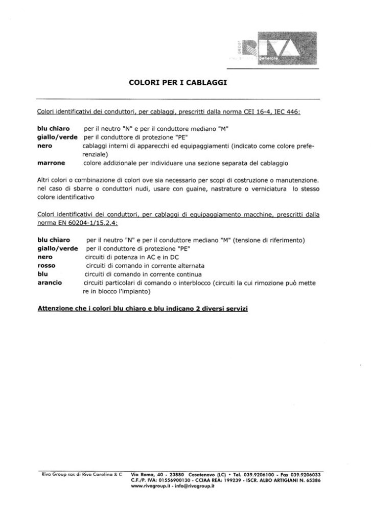 Uma nota elucidativa das cores dos condutores e normas correspondentes, usadas pelos construtores de máquinas Italianos.