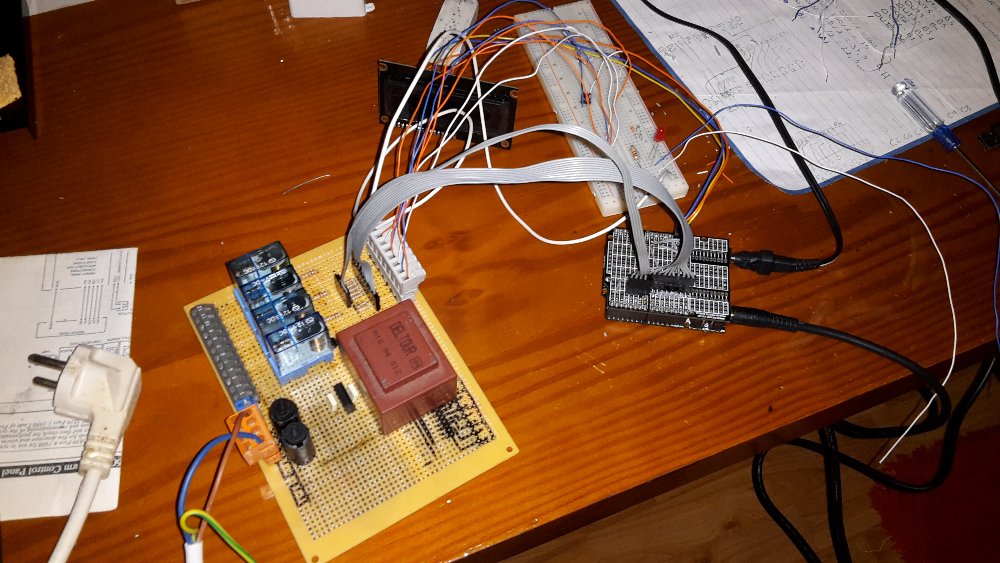 Isto até que funciona ;) . Mas de momento por estar ainda a testar tenho a placa shield alimentada por um transformador 12v externo que mete sinal na base do transistor e a placa potencia alimentada por um tranformador PCB 230v/12v que alimenta o coletor e dá massa ao emissor do transistor. O que se passa é que os transistores não estao a atracar. Mas se shuntar á massa do transformador da "shield" estes atracam.