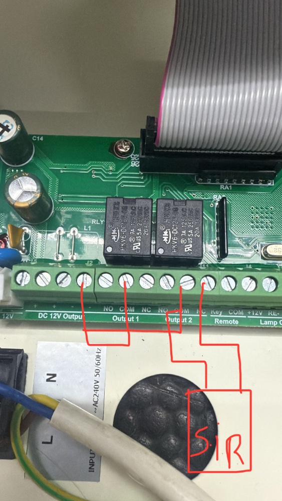 como refere o esquema, e ligo os dois fios da sirene no NO e COM ou NC e COM e nada, ou seja, quando passo a frente do sensor o alarme dispara ouve-se o click do relê, e a sirene não toca,