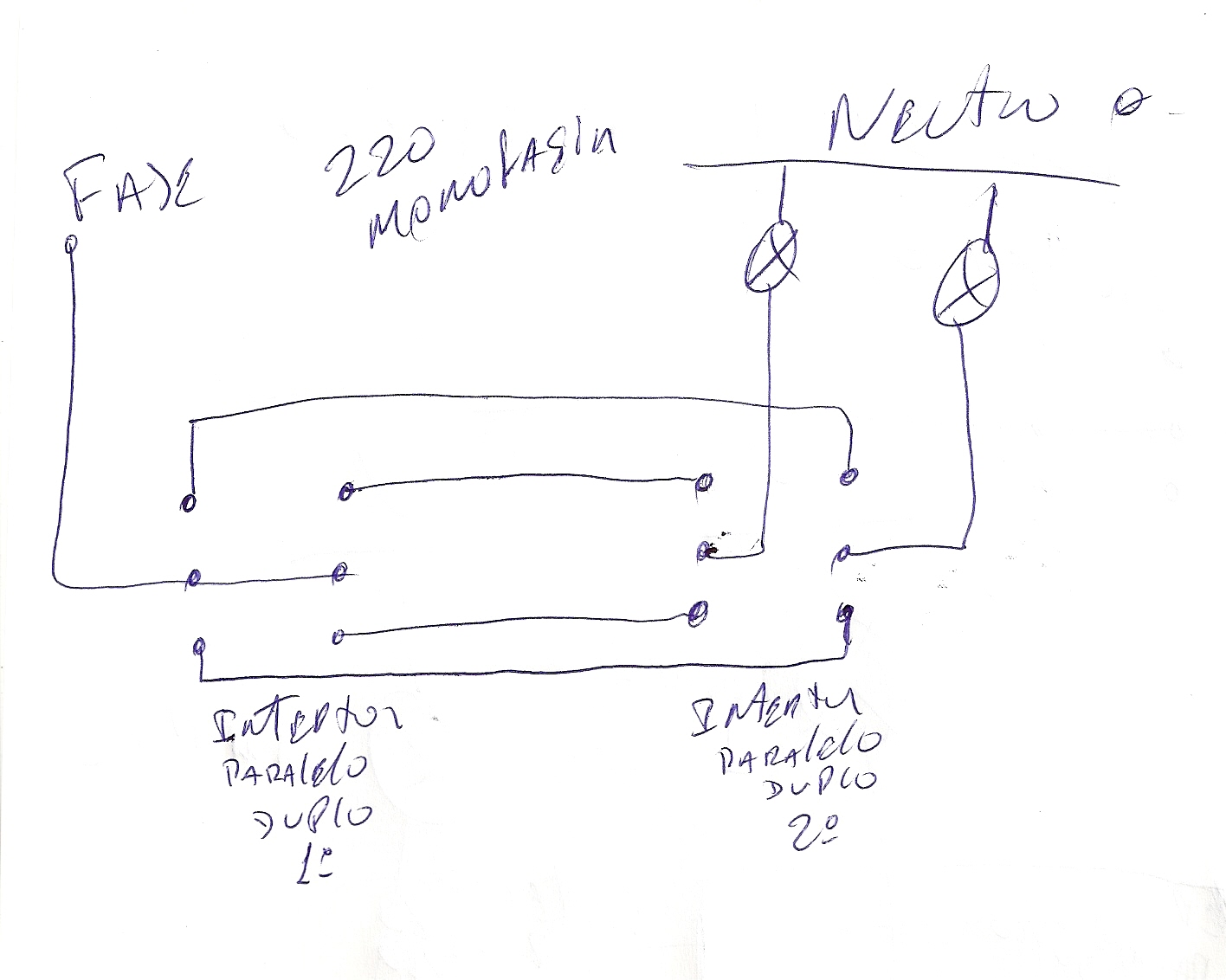 amigo segue ai seu esquema se sua resindecia fo 220voltes monofasica ou seja fase e neutro ou se for 220v duas fases ou se for 110voltes monafica fase e neutro dependendo da sua regiao mais a ligaçao e sempre a mesma nao muda que vai muda e sua lampada 110 ou 220
