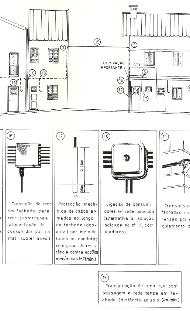 Qual a altura minima necessária a um cabo electrico aereo (a dita troçada) no atravessamento de vias destinadas à circulação?