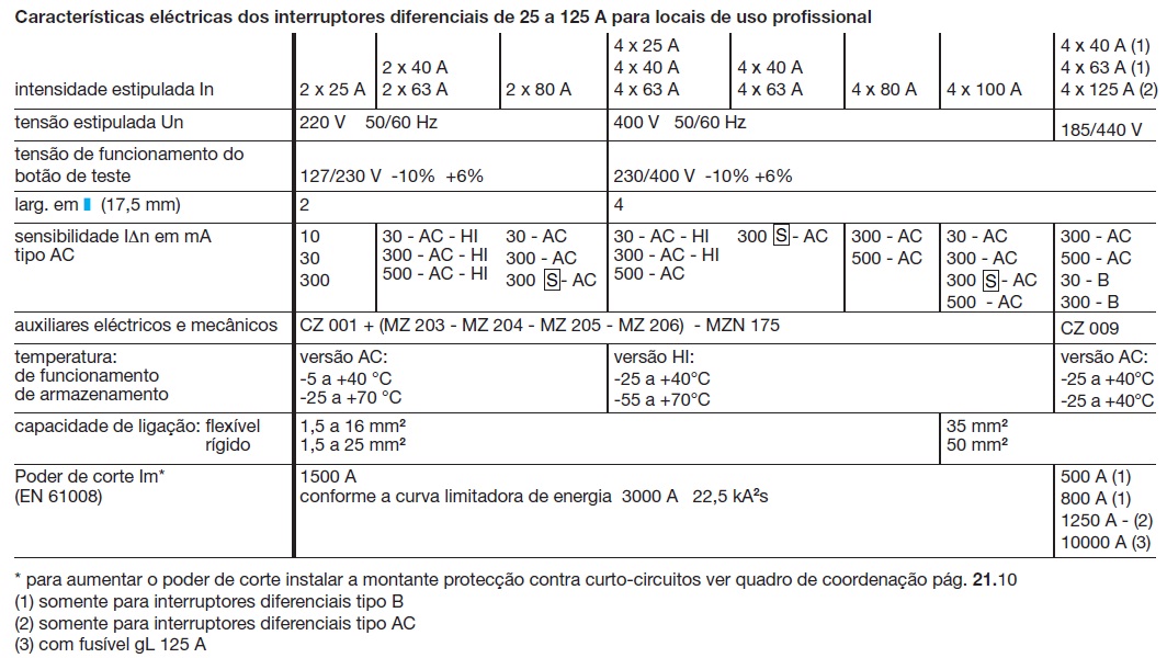 Aproveito para deixar aqui uma tabela da Hager que indica (2.ª imagem):