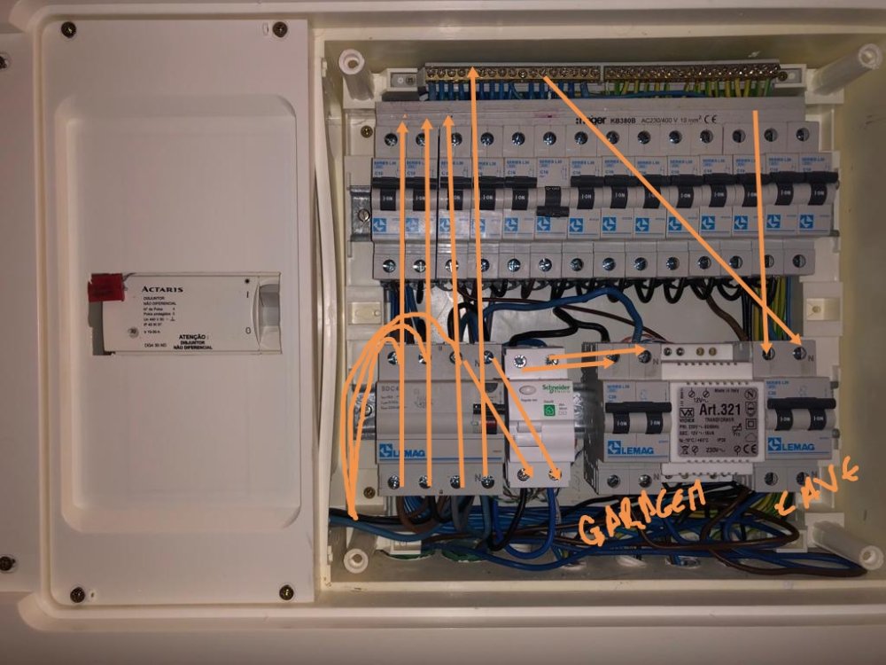 - Desse barramento, estavam a sair 2 fases, uma para o quadro parcial da cave, e outro para o quadro parcial da garagem (a casa é numa colina :) )