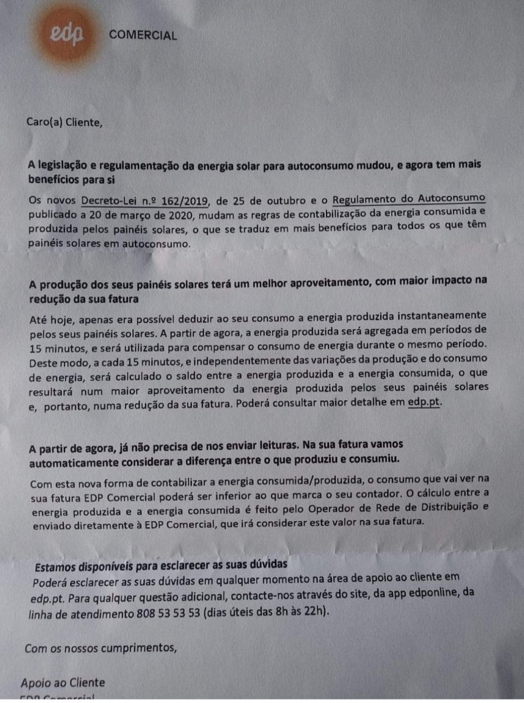 Alguém tem mais informações sobre a informação contida nesta carta enviada aos clientes da EDP Comercial?