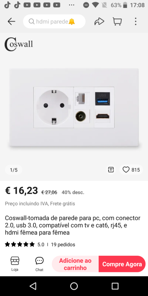 Até játomadas que tem incorporados tomada + cabo de rede + RF