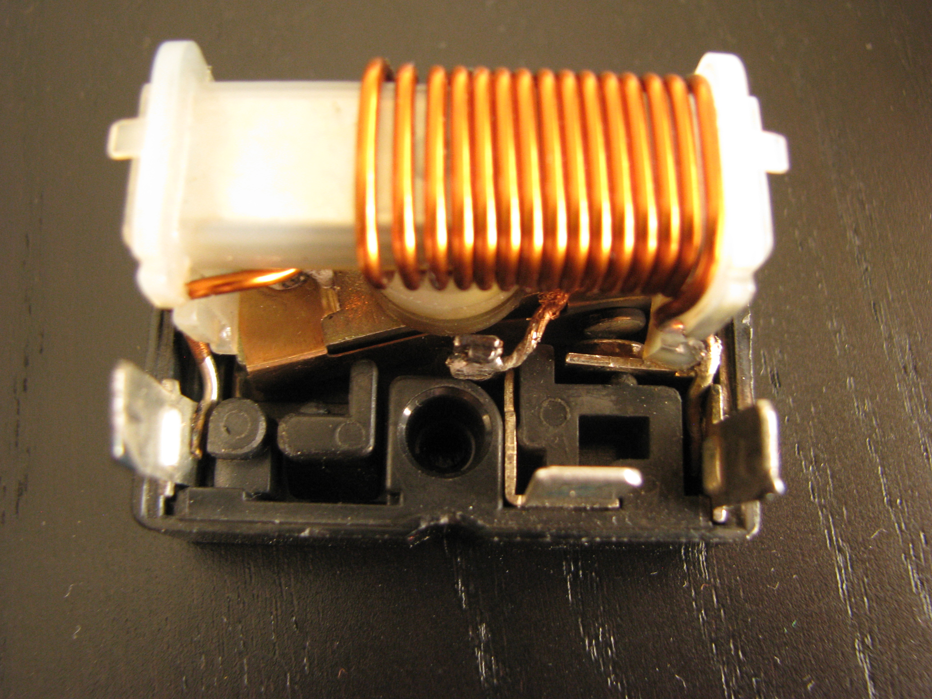 Mas não consigo perceber o funcionamento deste rele, internamente apenas tem uma bobine com meia dúzia de espiras e apenas tem 3 bornos (2 alimentação e o outro é o contacto).