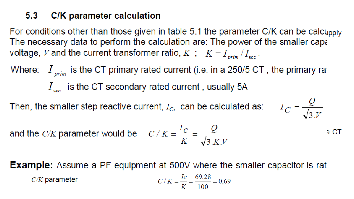 -C/K ( É a sensibilidade do controlador que é ajustado para 2/3 da corrente do menor estágio. O C/K