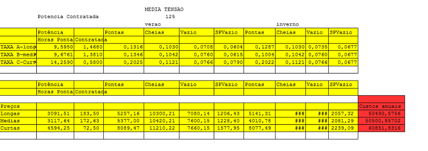 Ficheiro que permite estudos sobre tarifas elétricas.