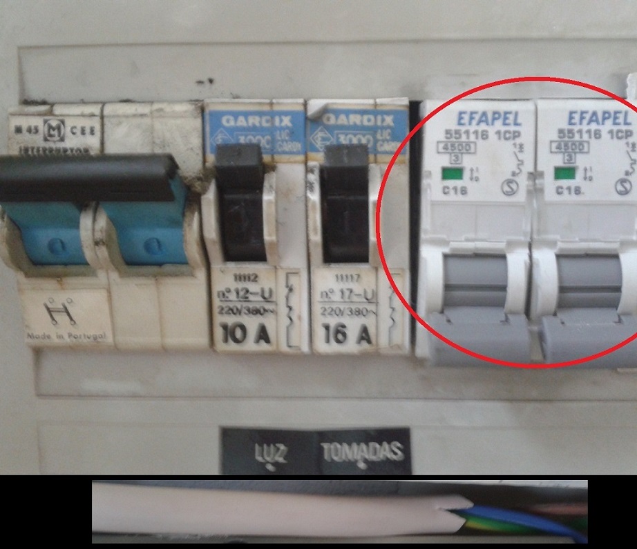 Porque é que o electricista instalou 2 disjuntores? Ou foi apenas 1, mas a senhora assinalou 2 na imagem?