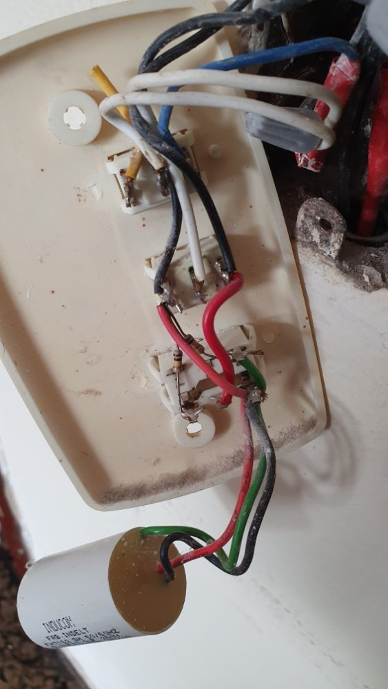 O interruptor original do ventilador possui controle de velocidade, e notei que há resistores na ligação e as 'pernas' de ligação do capacitor estão conectadas cada uma em um ponto diferente.